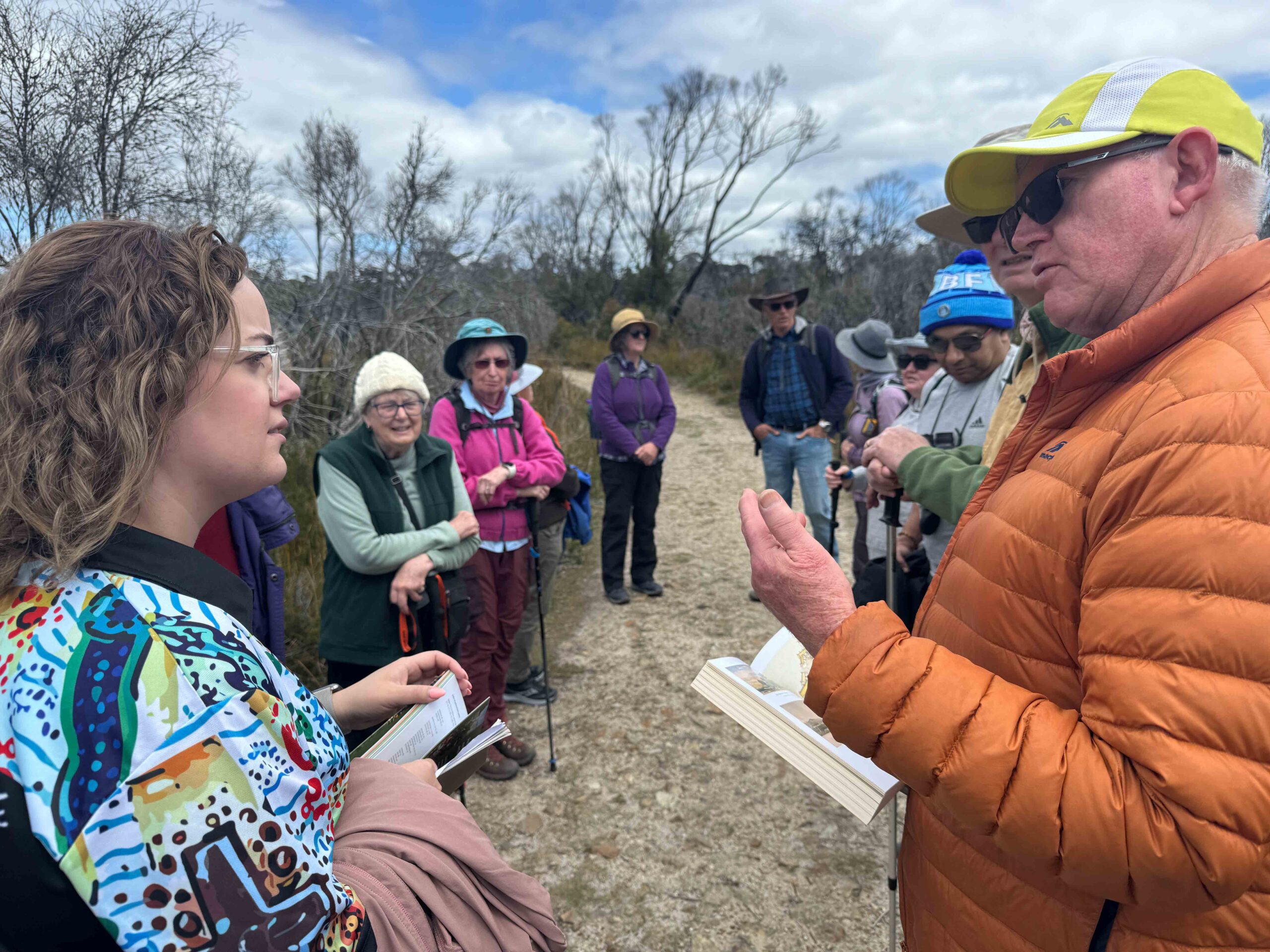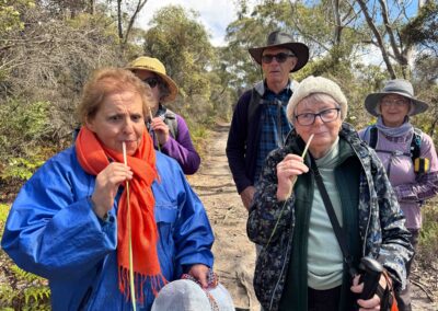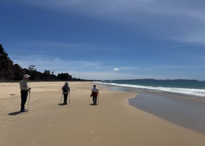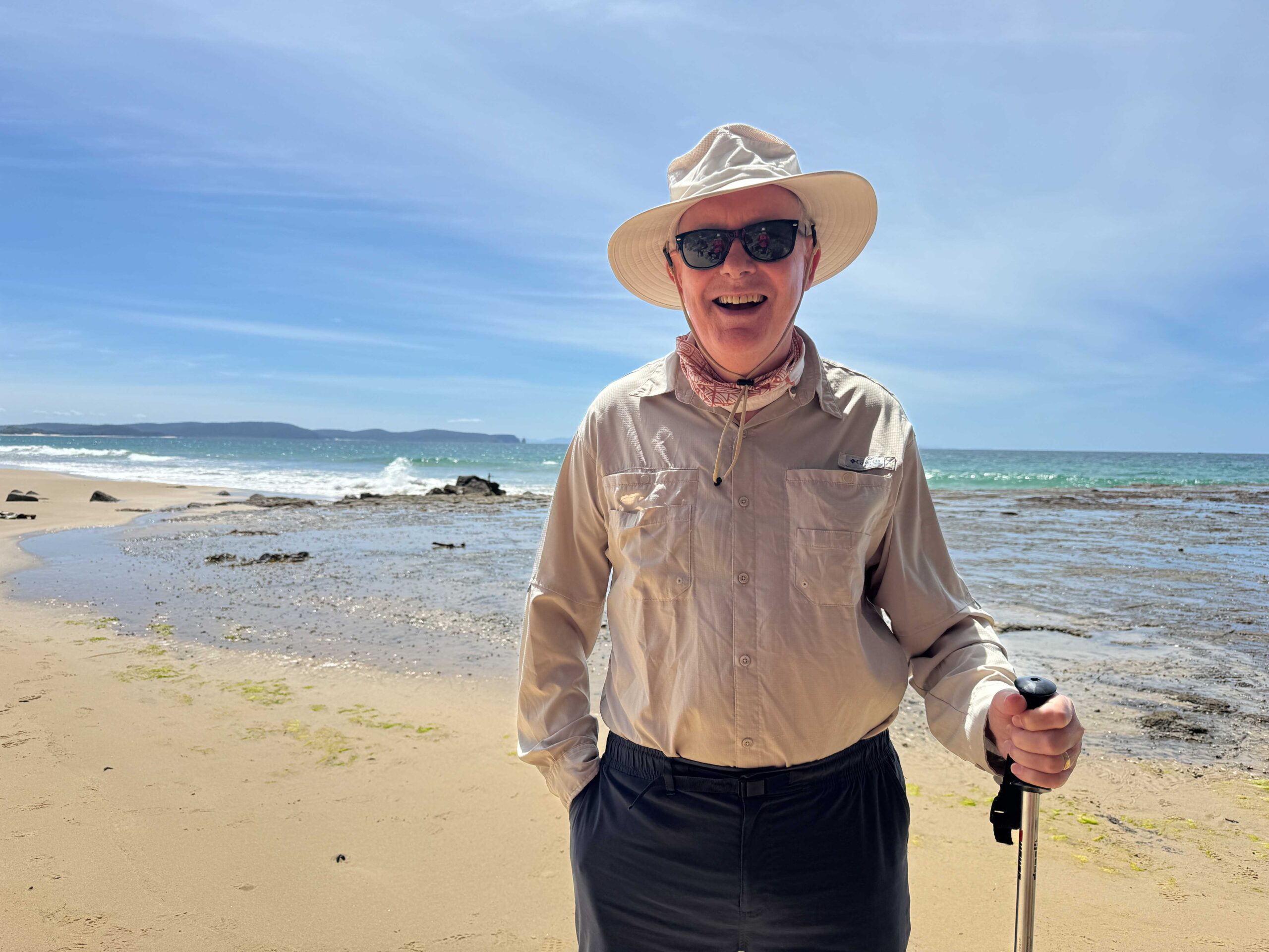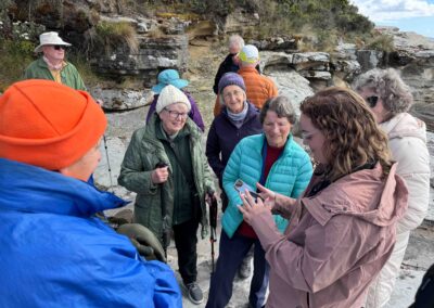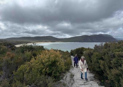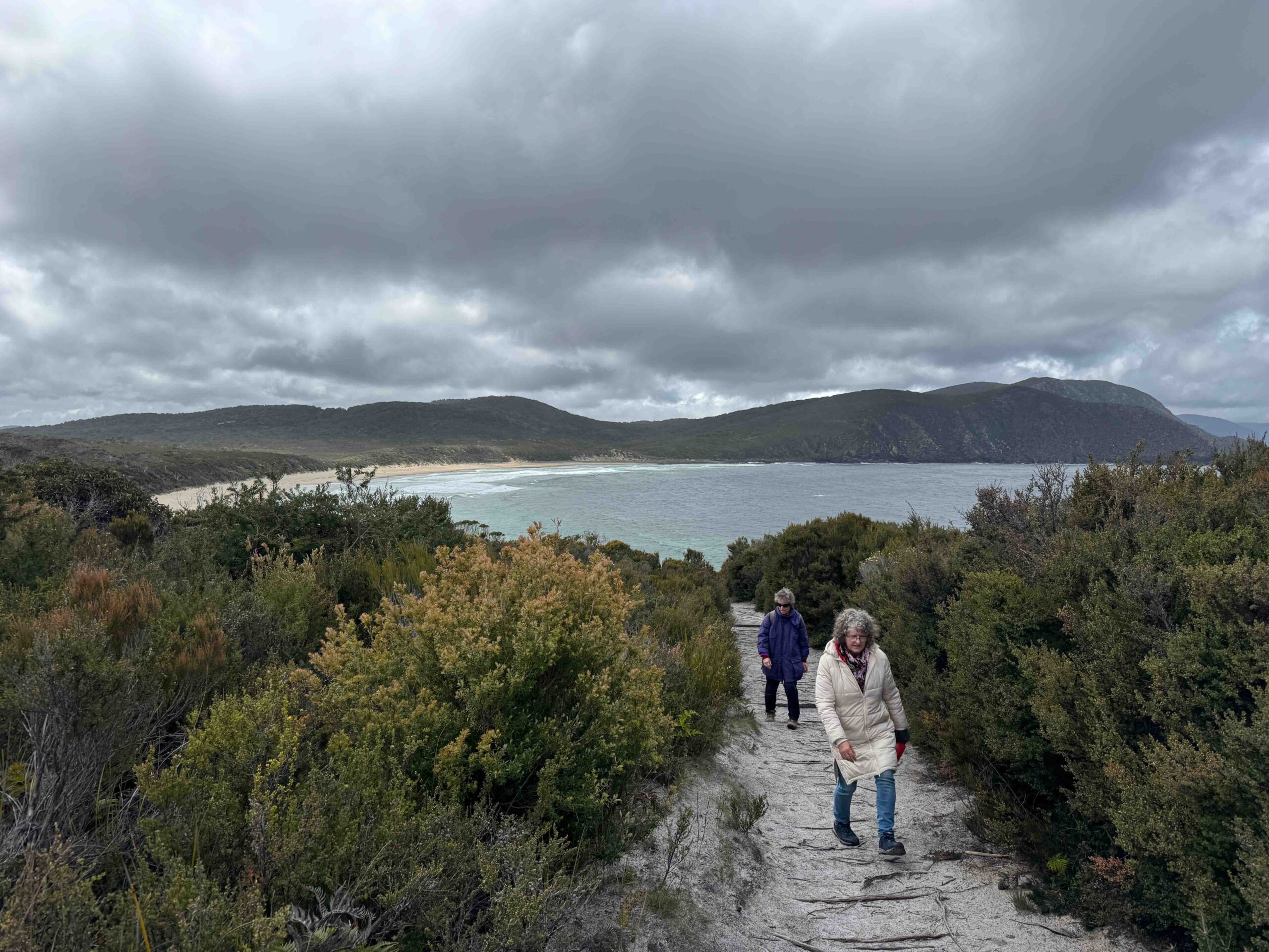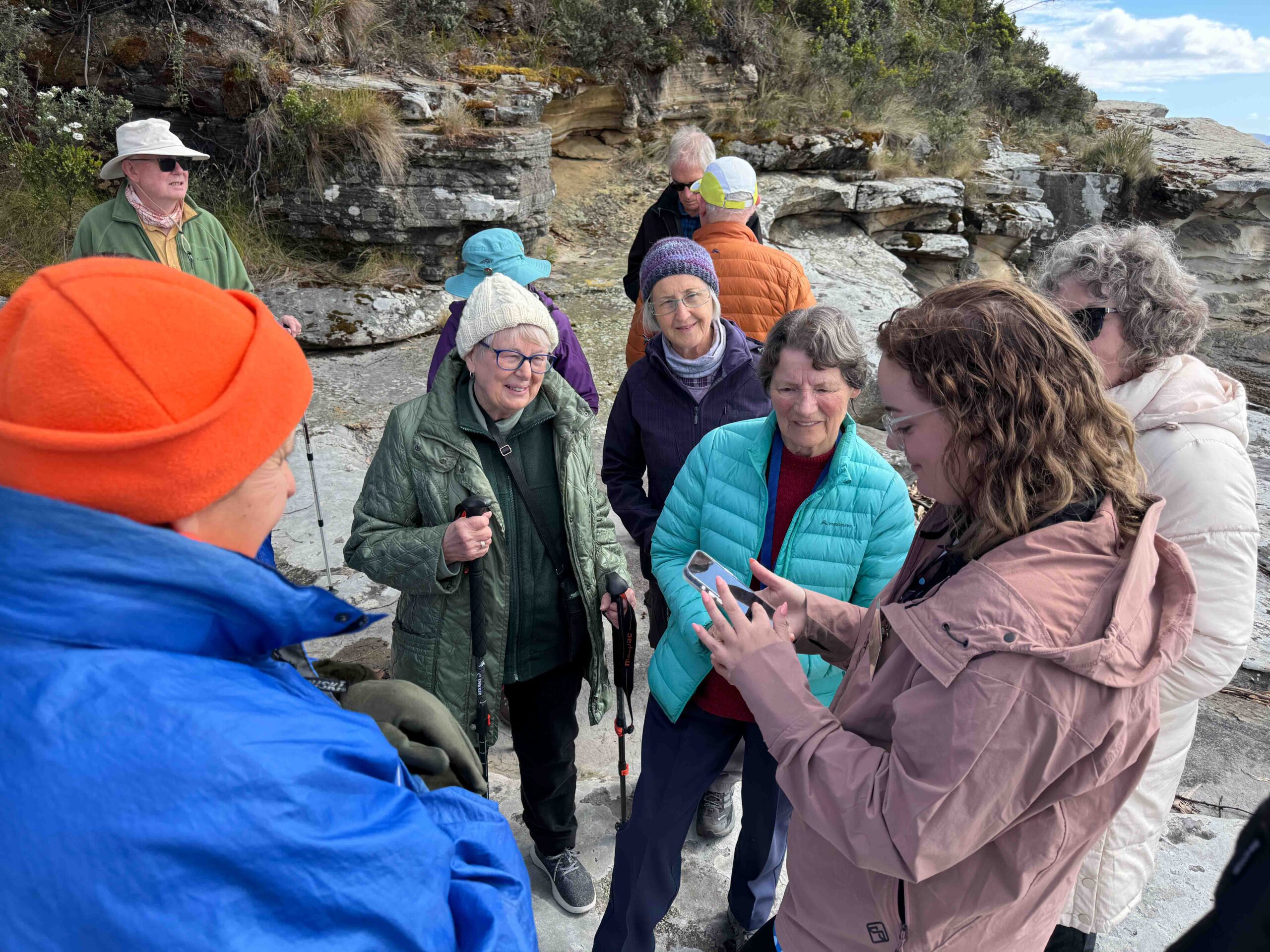 The group also reflected on the early journeys of Fr John Wallis. Participants read excerpts from his letters written in 1933, which described the terrain he travelled and the families he visited across Bruny Island, some of whom had not seen a priest for nine years. They walked along Neck Beach to the tessellated pavement, and some climbed Mount Mangana, the island’s highest peak, while others visited local communities.