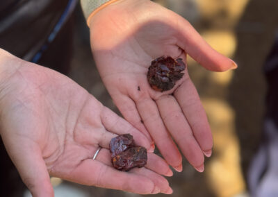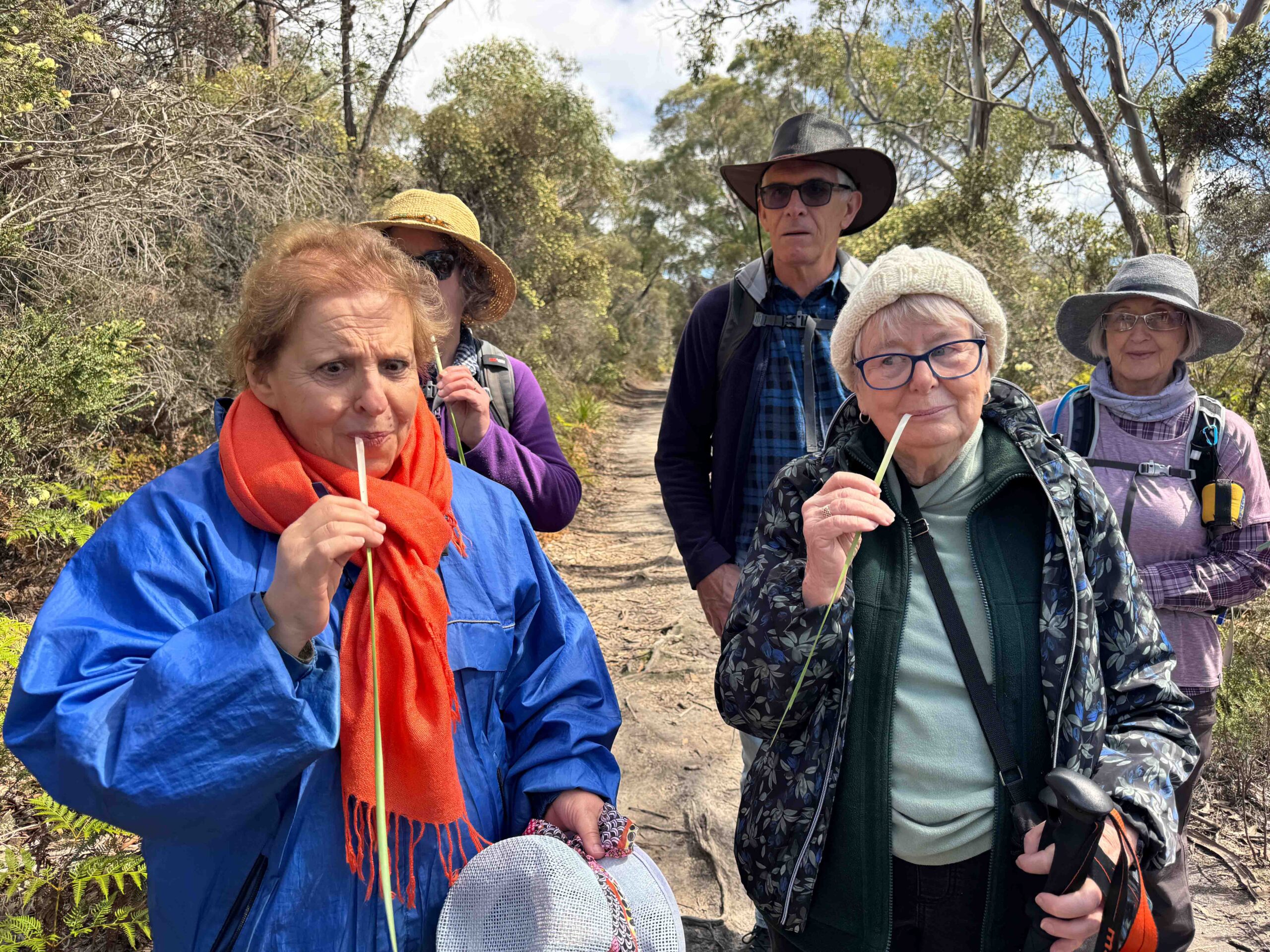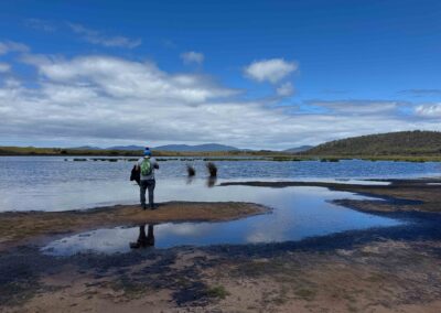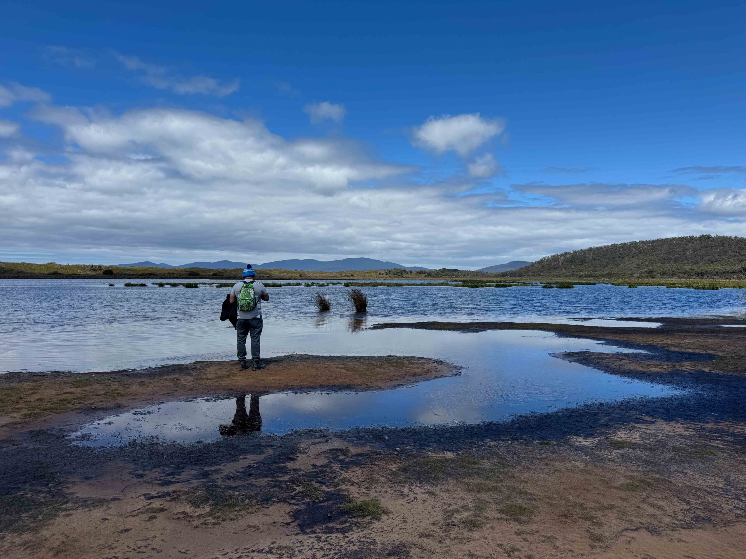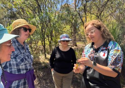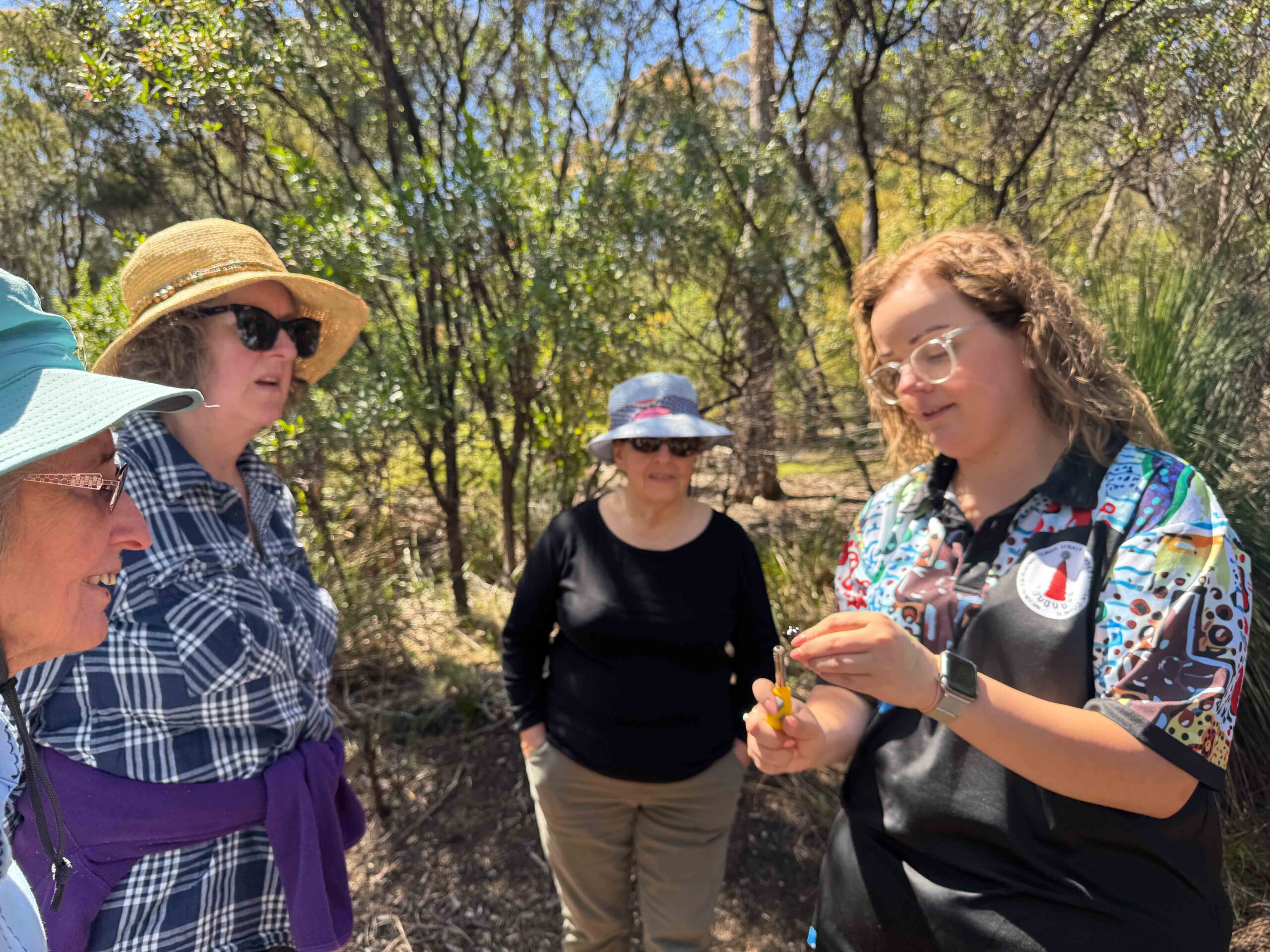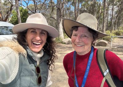A highlight of the first two days was being joined by Alarna Page, a proud Melukerdee woman from lutruwita/trowunna/Tasmania. Alarna shared her cultural knowledge, taught the group how to make traditional kelp baskets, and guided visits to sites of significance including a seaside kelp forest, Truganini Lagoon, a Midden and grass tree site. These experiences helped participants learn more about the land’s history, Aboriginal heritage, and the importance of truth-telling and sharing stories and deepening understanding.