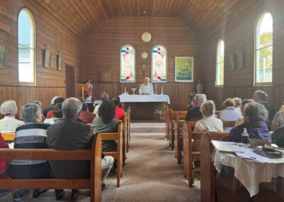 On Sunday, the group visited Cape Bruny lighthouse and joined the local parish community at St Brendan’s Catholic Church in Alonnah for their monthly Mass, celebrated by Fr Graeme Howard, a long-time friend of the MSS. Parishioners provided morning tea, offering hospitality and local stories.